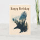 Carte d'anniversaire personnalisée avec majestueux aigle volant et forêt de montagne avec "Happy Birthday" dans la typographie vintage serif. Intérieur beige et dos coloré. Également disponible pour Téléchargement Instant pour partager facilement avec vos amis et votre famille.