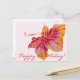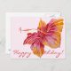 Nouvelle carte Lane - Carte postale joyeuse et colorée, avec une fleur d'hibiscus hawaïenne colorée en rouge, rose et orange. Avec un fond rose doux et 'Joyeux Anniversaire !' en typographie rouge amusante. Carte bohème chic amusante à envoyer pour l'anniversaire d'une fille !