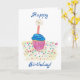 Ces cartes d'anniversaire comportent ma peinture colorée d'un cupcake avec glaçage bleu, glaçage, avec un emballage rose. Une bougie étoilée dans le cupcake et un confetti sur le tissu de la table. Il est livré avec un verset qui peut aussi être facilement personnalisé sur la forme modèle. Merci pour faire du shopping CherylsArt sur Zazzle.