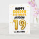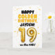Célébrez le 19ème anniversaire de votre enfant avec cette carte Joyeux Anniversaire en Or ! Conçue dans un thème doré lumineux et joyeux, cette carte présente une mise en page amusante et audacieuse avec des détails de confettis et un grand numéro de ballon doré. Personnalisez-la avec un nom sur le devant et à l'intérieur de la carte pour rendre leur anniversaire en or encore plus spécial !
