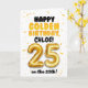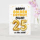 Célébrez le 25e anniversaire le 25 avec cette carte Joyeux Anniversaire Doré ! Conçue dans un thème doré lumineux et joyeux, cette carte présente une mise en page amusante et audacieuse avec des détails de confettis et un grand numéro de ballon doré. Personnalisez-la avec un nom sur le devant et à l'intérieur de la carte pour rendre leur anniversaire doré encore plus spécial !