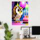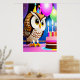 Joyeux anniversaire, hibou, gâteau| AI Art Poster