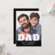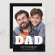 Joyeux papa d'anniversaire moderne photos personnalisées Cartes de voeux. Ce design moderne comprend un texte blanc "DAD" superposé sur votre photo préférée sur un arrière - plan noir avec le texte modifiable "Joyeux anniversaire (votre texte et votre nom)" est écrit dans la typographie moderne. Personnalisez le texte en modifiant la zone de texte.