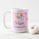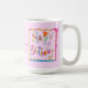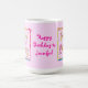 Dites à quelqu'un spécial "Joyeux anniversaire" ou autre message personnalisé avec cette tasse. Cet art présente les mots Joyeux Anniversaire en lettres pleines de fantaisie, dont des ballons, un gâteau d'anniversaire et un cupcake aux couleurs vives. Une bordure multicolore entoure les mots. L'image est sur un arrière - plan rose. Customisez pour personnaliser votre message. Célébrez un anniversaire ou une autre occasion avec l'art original cake et cupcake qui est parfait pour les garçons et les filles ainsi que pour les adultes. Les couleurs sont à la fois plus douces et plus vives. Entièrement personnalisable pour personnaliser.