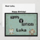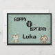 Magnifique carte de voeux safari avec un tigre et un singe mignons et une végétation botanique luxuriante autour du bord. Il y a un endroit pour personnaliser l'âge sur une empreinte animale et pour le nom de votre enfant. À l'intérieur, vous pouvez écrire un message personnel avec le de et les informations.