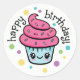 Mignons autocollants avec un cupcake d'anniversaire heureux.