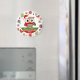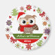 Le hibou est dans les tons beige et marron chocolat avec un chapeau de santa rouge et une écharpe. Les différents ornements en rouge, orange, citron vert, violet sont dans l'arrière - plan. Les textes et les choux sont personnalisables. L'arrière de l'ornement a la même image arrière - plan et les textes sont personnalisables.