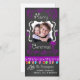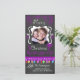 Joyeux cartes photos de vacances de Noël avec un tableau noir look arrière - plan, beaucoup de tourbillons violets et texte qui lit Joyeux Noël, une chaîne de lumières des arbres colorés dans différentes couleurs, des ornements pourpres suspendus, et des zones que vous pouvez customiser ces beaux et brillants cartes photos de vacances avec votre photo et vos noms!