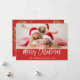Joyeux Noël Carte photo de script lettres main. La photo et le texte de ce script de brosse manuscrite peuvent être mis à jour et customisés avec votre photo et votre nom de famille. Cette carte affiche également le nom de famille et une feuille d'or au dos de la carte de Noël.