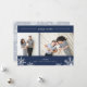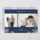 Elégant et moderne carte photo de vacances dispose de deux photos préférées alignées côte à côte, avec "Holiday Cheer" en haut en italique blanc et typographie de bloc. Personnalisez avec votre salutation personnalisée et votre nom en bas, accentué par quatre illustrations de flocon blanc. Un riche arrière - plan bleu marine ajoute une élégance classique à votre accueil de vacances. La carte revient à un motif de chute de neige en gris chic.