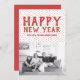 Carte photo Joyeuse Joyeuse du Nouvel An avec un amusant arrière - plan pois en rouge et blanc. Ajoutez une photo et un accueil personnalisé pour customiser. Photographie © Storytree Studios, Stanford, CA