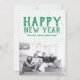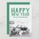 Carte photo Joyeuse Jour de l'An avec un arrière - plan de pois amusant en vert et blanc. Ajoutez une photo et un accueil personnalisé pour customiser. Photographie © Storytree Studios, Stanford, CA