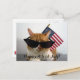 Célébrez le 4 juillet avec cette carte postale cool de ma collection "Kitty Koolness", avec un chat orange et blanc aux teintes noires avec un drapeau américain derrière elle. Photo du designer.
