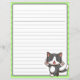 Joyeux chat gris sur papier bordé de vert,