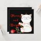Joyeux chat jouant avec la lumière LED - une jolie carte de Noël plate pour vous. Bonne journée, mon ami !