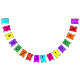 Un drapeau coloré qui sonne pour un Joyeux Anniversaire. 3 des drapeaux ont des feux d'artifice colorés.