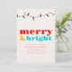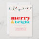 Ce modèle d'invitation de fête de vacances présente un design festif et gai avec des lumières de Noël colorées accrochées au sommet, ajoutant une touche de scintillement de vacances. Au centre, l'expression "Joyeux & Lumineux" s'affiche dans des couleurs audacieuses et vibrantes, capturant l'esprit joyeux de la saison. En-dessous, les détails de la fête sont soigneusement arrangés, en s'assurant que toutes les informations essentielles sont clairement présentées tout en maintenant le thème animé et festif. Ce modèle est parfait pour répandre la joie des vacances et inviter les invités à un rassemblement festif mémorable.