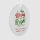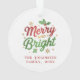 Ajoutez une touche de magie de vacances à votre arbre avec l'Ornement de Typographie de Noël Moderne Merry et brillant! Avec une typographie audacieuse de Joyeux et Bright en rouge, or et vert festif, le design est accentué d'étoiles dorées, flocons de neige et détails de baies sèches sur un arrière - plan blanc immaculé. Personnalisez-le avec votre nom de famille et votre est. année en élégante typographie rouge, en faisant un souvenir intemporel à trésor année après année. Un décor de vacances moderne mais classique qui célèbre la famille et l'esprit festif!