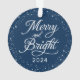 Un design simple et moderne de décoration de Noël avec une photo ronde encadrée par un motif de lumières scintillantes et étoiles. Le dos de l'ornement inclut "Joyeux et brillant" dans un texte de script élégant avec du texte personnalisé pour l'année. L'arrière - plan festif et riche marine / bleu minuit peut être modifié.
