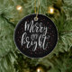 Ce joli ornement moderne en céramique de Noël présente une typographie élégante "Joyeux et brillant" et des graphismes étincelants en rouge corail. Ajoutez votre photo et votre texte personnalisé à l'arrière. Cet ornement photo sera une décoration de Noël élégante ou un cadeau de Noël personnalisé pour votre famille ou vos amis. Plus d'articles correspondants et options de couleur disponibles dans ma boutique BaraBomDesign.