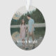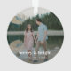 Un élégant ornement photo moderne avec une typographie rétro audacieuse citant "joyeux & lumineux" en blanc. L'accueil, le nom et l'année peuvent être facilement customisés pour une touche personnelle. Un design tendance, minimaliste et contemporain pour se démarquer de cette période de vacances ! L'image montrée n'est à des fins d'illustration que pour être remplacée par votre propre photo. L'image de l'espace est celle d'un jeune couple heureux qui se promène sur une plage au bord d'un lac avec une belle pinède et une montagne en toile de fond.