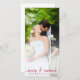 Envoyez des salutations élégantes de la nouvelle mariée Mr & Mrs avec ce carte photo 4x8. Contient une superposition de dégradé blanc, rendant le texte rouge vraiment "pop". Veuillez remplacer l'image modèle par une photo de votre choix avant d'acheter.