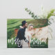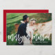 Répandez la joie des vacances avec cette carte de mariage élégante. Cette carte à plat présente un script écrit à la main "joyeux et marié" avec un arrière - plan de neige rouge et blanc. La carte de vacances idéale pour les jeunes mariés. Une version carte postale et carte pliée sont disponibles.