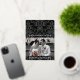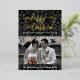 Elégant, intemporel, classique, noir foncé et gris fusain damassé arrière - plan motif en noir et blanc gras avec votre choix de feuille d'or or, argent ou rose. Le couple marié est enfin marié, et prêt à montrer sa nouvelle vie avec des Cartes de fin de année photo personnalisés avec le thème "marié et joyeux". Souhaitez-vous un séjour inoubliable en famille, entre amis et mariages avec cet arrière - plan damassé noir et blanc.