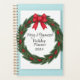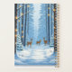 Un superbe design de planificateur sur le thème de Noël, avec une couverture avant magnifiquement détaillée, une couronne festive ornée de saints, de baies et d'un arc rouge, et une scène forestière enneigée paisible, avec des cerfs et des lumières scintillantes sur la couverture arrière. Parfait pour un séjour organisé en période de vacances.