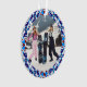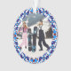 Joyeux et Festive Bleu Photo Cadre de Noël Arbre de Noël rond Décoration Arbre de Noël. Un décor de bauble circulaire coloré et lumineux pour votre hiver et bleu glacé arbre et décorations. Le design du cadre est une conception d'abstraction géométrique et joliment motif sur les modèles traditionnels de blocs de couleurs festives. En hiver, les couleurs sont bleu glace et blanc neige, avec des touches de brun rougeâtre foncé. Personnalisez-le en remplaçant les deux photos, à l'avant et à l'arrière, par les vôtres pour un cadeau de Noël à la famille et aux amis. Chérissez vos souvenirs de Yuletide d'une Wonderland d'hiver. Un grand cadeau pour les meilleurs amis, frères et soeurs, ou couples. Un bon rapport qualité-prix pour les fêtes ou les premiers Noël.