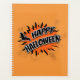 Happy Halloween illustration de style comique avec design de texte, chauve-souris et décorations d'étoiles sur arrière - plan de demi-ton. Il est possible de changer la couleur arrière - plan et d'en ajouter une autre dans le design avec votre choix.