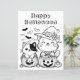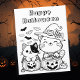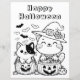 Bonne page de coloriage Halloween pour les enfants. Cute chats d'Halloween, chauves-souris et citrouilles.