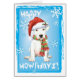 Envoyez les voeux de Noël avec cette carte d'un mignon chiot Dogo Argentino portant un chapeau de Père Noël et foulard rayé au milieu des flocons de neige et les mots, Happy Howlidays! Idéal pour les familles et les amis amateurs de Dogo. Bonne journée !