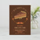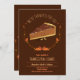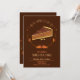 Une invitation Thanksgiving avec un morceau souriant de tarte au pacan qui est prêt pour le jour férié. Tout le texte est personnalisable.