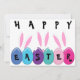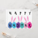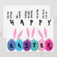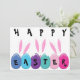 Trois petits lapins blancs aux yeux minuscules et aux oreilles géantes regardent vers les oeufs de Pâques colorés. Ils ont travaillé dur pour mettre toutes les lettres sur les oeufs parce qu'ils ont invité tous les petits enfants à une chasse aux oeufs de Pâques. Tout le texte à l'avant et à l'arrière du invitation peut être customisé.