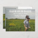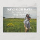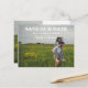 Joyful Couple Mariage Enregistrer Faire-part Carte postale est un champ de fleurs lumineux et heureux. Changez cette image pour une photo de vous. Ce design peut être personnalisé. Le modèle est configuré pour vous permettre d'apporter des modifications.