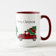 Red & green Buffalo plaçait un camion antique rouge avec des arbres de Noël verts et noirs plaid au centre. Cela aura l'air si doux sur votre table de vacances