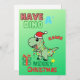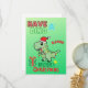 Carte de vœux de Noël colorée avec un dinosaure. Parfaite pour les petits ou les grands enfants dans votre vie !