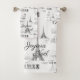 La Tour Eiffel, les mots "Joyeux Noël" (Joyeux Noël en français), Paris en typographie vintage, les étiquettes vintages français pour le champagne et le cacao et les sprigs de sainte vintage en noir sur blanc confèrent à la chambre de toilette de Noël un joli et intéressant ensemble de serviettes, ou simplement la serviette de bain ou de cuisine. Les articles correspondants sont disponibles dans mon magasin Zazzle.