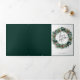 Joyeux calligraphie de Noël en lettrage sur la couronne de baies botanique d'hiver, photo de vacances carte de voeux en tri-pli. La carte comporte 4 lignes modèle photo et plusieurs lignes pour votre texte personnalisé. Joli feuillage d'aquarelle et baies aux motifs argentés et aux accents dorés.