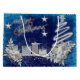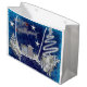 Beau sac cadeau bleu et blanc avec roses, cadeaux et étoiles, dit Joyeux Noël! Idéal pour vos cadeaux de vacances spéciaux !