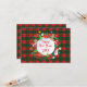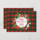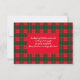 Carte de vœux 2025 - Noël et Bonne Année 20XX ! Carte de vœux de Noël décorée de symboles magiques de Noël, motif d'éléments de cadeaux de vacances d'hiver, bonhomme de neige, sapin de Noël, boule de Noël, renne, flocons de neige, étoiles de Noël et autres personnages festifs sur ornements carrés à carreaux de Noël, motif écossais (couleurs vert et rouge). Conception graphique originale tendance. Invitations et papeterie > Cartes de vœux. Décoration de cadeaux pour les fêtes d'hiver. Conception de carte de vœux avec monogramme et modèle de texte. Personnalisez-les en ajoutant un nom. Décoration graphique sur les deux côtés.