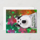 Joyeux Noël, Joyeuse carte du Nouvel An avec un chien coquin et arrière - plan de fleurs rouges. Facile à customiser, personnaliser votre texte.