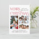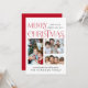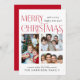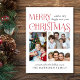 Carte de voeux photo de vacances moderne. "Joyeux Noël" est écrit en typographie vintage rouge stylisée. Personnalisez-vous avec trois photos de famille, un accueil saisonnier et votre nom.
