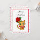 Chatte orange mignonne personnalisée avec Poinsettia portant des mitaines mignonnes Joyeuse carte de Noël.