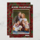 Cette carte de Noël moderne présente votre photo préférée sur un motif floral de Noël rouge et vert riche avec le texte "Joyeux Noël" et l'année sur le devant. Au contraire, votre message personnalisé typographie moderne #noël #cartes de visite #personnalisation #cartes de visite #papeterie #cartes de visite #cartes de visite #personnalisées #cartes de visite #personnalisées #cartes de visite #personnalisées #cartes de visite #hiver #fêtes #fêtes #fêtes #noel