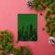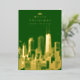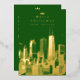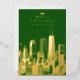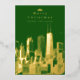 Créez une carte de voeux photo spéciale pour les vacances. Joyeuse carte de voeux de Noël avec l'horizon de Chicago Illinois. Véritable feuille sur le devant de la carte. Ajoutez la photo désirée (ou conservez ce qui est montré). Carte de voeux festive aux couleurs vert et or. Elégant et moderne. Idéal pour ceux qui voyagent ou vivent à Chicago et veulent une carte de Noël qui affiche la ville. Texte personnalisé. Ajoutez un message d'accueil personnel au verso de la carte. Utilisez le modèle pour créer votre propre carte de Noël à feuille de Chicago.