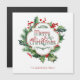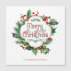 Amusant, festif et coloré Joyeux voeux de Noël dans une typographie ornementale tourbillonnant unique en vert et rouge sur étiquette personnalisé avec cloisons décoratives et frontière sainte.