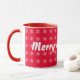 Joyeux Noël Blanc Snowflakes arrière - plan rouge sur une tasse.