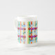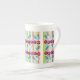 jolie porcelaine, bonne dimension effet brillant bien dans l'ensemble. Le motif et les couleurs sont réussis.Je trouve néanmoins dommage de ne pas occuper tout l'espace avc le motif car la partie rouge au dos de la tasse est trop présente et pas intéressante visuellement.